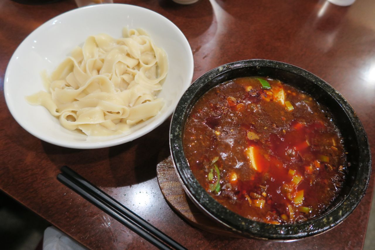 名物メニューである「味覚石焼麻婆刀削麺」は、そんな麻婆豆腐と刀削麺を組み合わせているのだから、向かうところ敵なしだ。